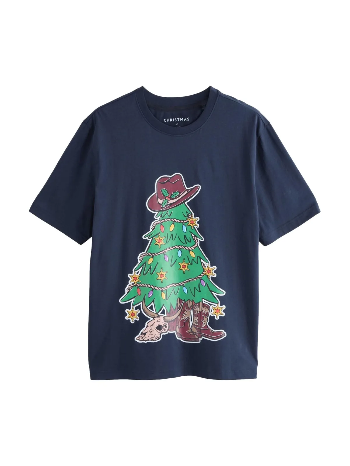 Specificaties: Next Shirt ‘Weihnachten’ navy / bruin / grasgroen