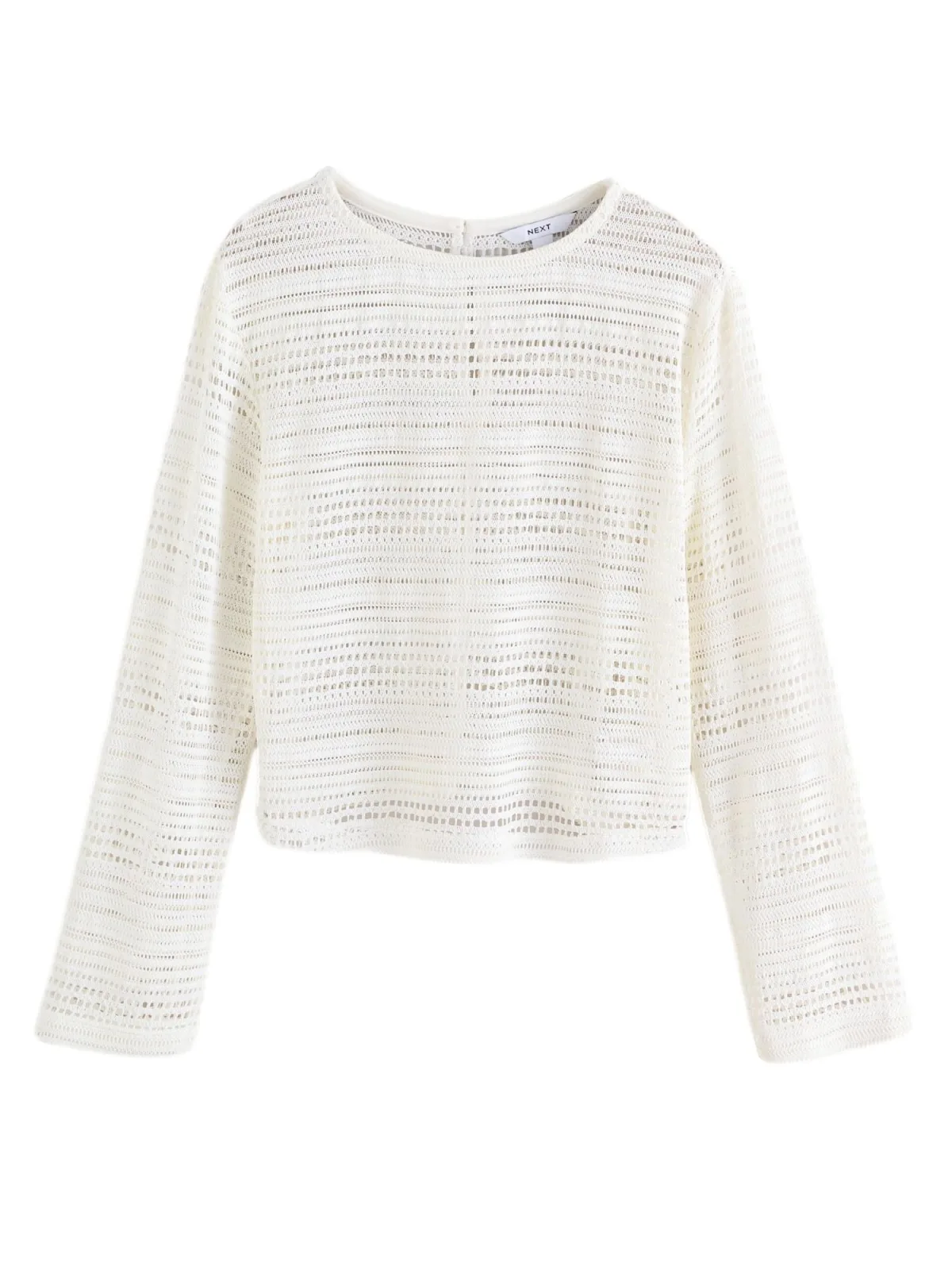 Design: Gevoerde zoom/rand; Type sluiting: Knoopsluiting; Materiaal: Gehaakt; Halstype: Ronde hals; Motief: Effen; Details: Mesh; Extra's: Op staal naden; Pasvorm: Normale pasvorm; Armlengte: Lange mouw; Lengte: Normale lengte