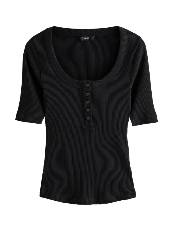 Design: Gevoerde zoom/rand; Type sluiting: Knoopsluiting; Materiaal: Jersey; Halstype: Henley hals; Motief: Effen; Extra's: Op staal naden; Pasvorm: Slanke pasvorm; Armlengte: Halve mouw; Lengte: Normale lengte