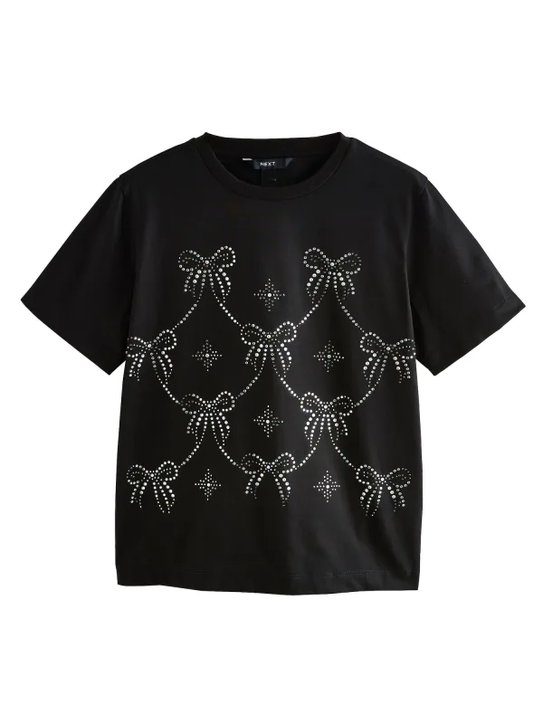 Design: Gevoerde zoom/rand, Geribbelde kraag, Nektape; Materiaal: Jersey; Halstype: Ronde hals; Motief: Winterse print; Details: Sierstenen; Extra's: Met halfedelstenen, Voelt zacht aan; Pasvorm: Normale pasvorm; Armlengte: Kwartmouw; Lengte: Normale lengte