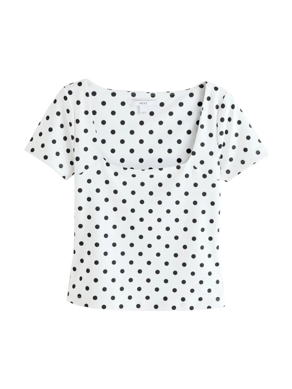 Design: Gevoerde zoom/rand; Materiaal: Gerecycled materiaal; Halstype: Carréhals; Motief: Gestippeld; Extra's: All-over patroon; Pasvorm: Slanke pasvorm; Armlengte: Kwartmouw; Lengte: Korte pasvorm
