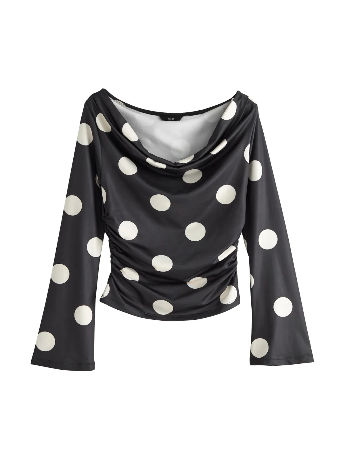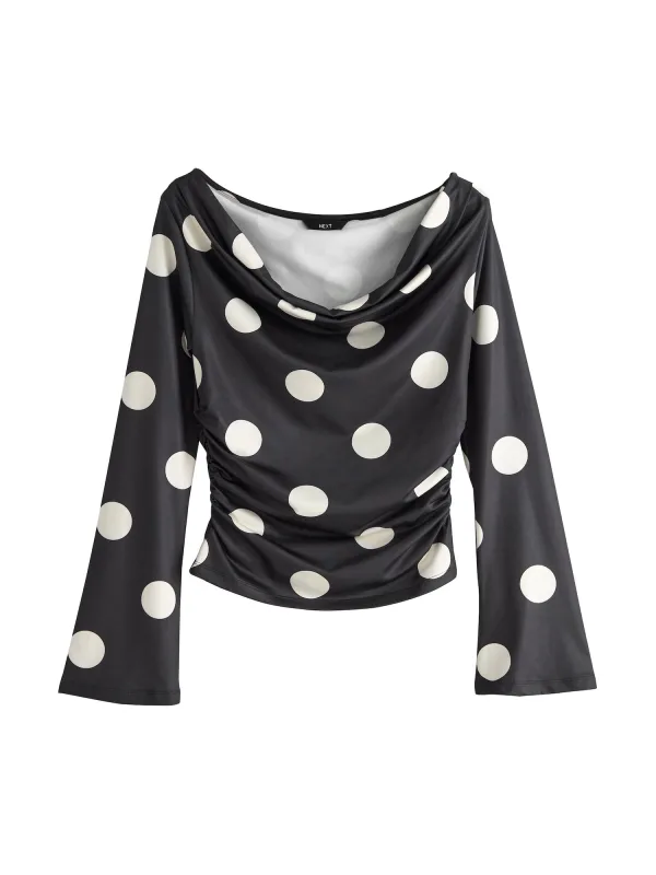 Design: Gevoerde zoom/rand, Rechte zoom; Type sluiting: Slip; Materiaal: Gerecycled materiaal; Halstype: Watervalhals; Motief: Gestippeld; Details: Gedrapeerd; Extra's: All-over patroon, Voelt zacht aan; Pasvorm: Normale pasvorm; Armlengte: Lange mouw; Lengte: Normale lengte