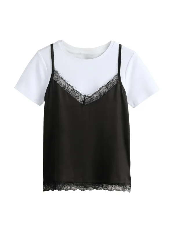 Design: Geribbelde kraag, Gelaagde look, Zoom/rand met boord; Materiaal: Jersey; Halstype: Ronde hals; Details: Kant; Extra's: Verstelbare bandjes, Voelt zacht aan; Pasvorm: Normale pasvorm; Aantal: 2 Pack; Armlengte: Kwartmouw; Lengte: Normale lengte