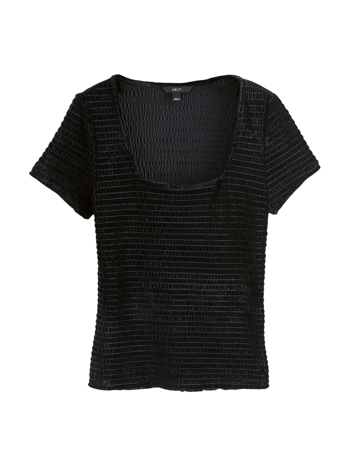 Next Gerimpelde fluwelen top met korte mouwen en vierkante hals