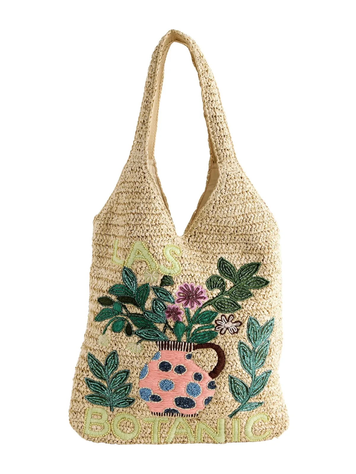 Design: Ruim hoofdvak, Ritsvak binnen; Type sluiting: Open; Motief: Motiefprint; Materiaal: Stro materiaal; Extra's: Op staal naden; Maat: Klein; Hengsellengte: Korte schouderriemen