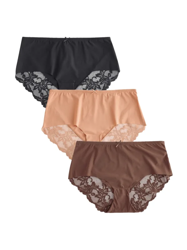 Design: Elastische taille/zoom; Details: Kant; Extra's: Buigzame grip; Aantal: 3 Pack; Taillehoogte: Mid waist