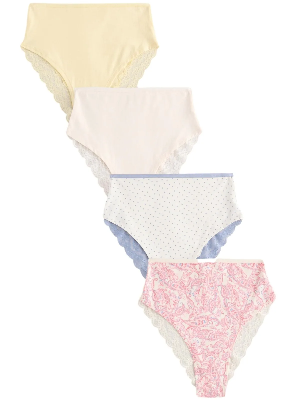 Design: Gevoerde zoom/rand; Materiaal: Katoen; Details: Kant; Aantal: 4 Pack; Taillehoogte: High waist