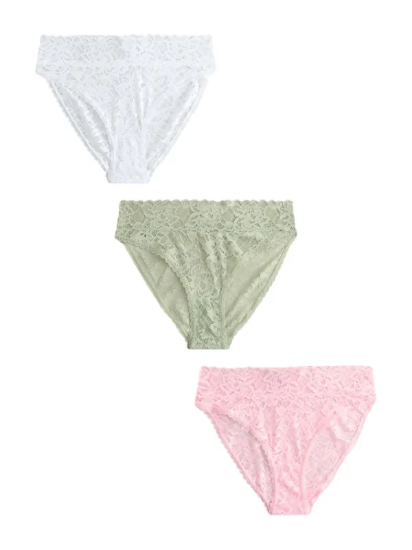 Design: Elastische taille/zoom; Motief: Effen; Details: Kant; Extra's: Licht transparant; Aantal: 3 Pack; Taillehoogte: High waist
