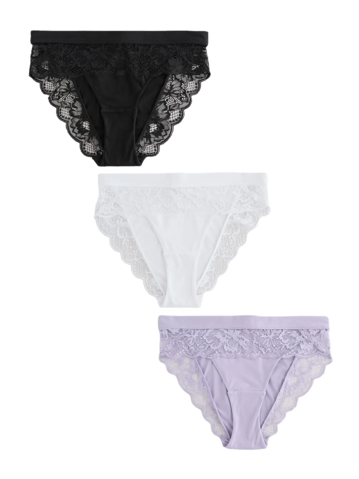 Design: Gevoerde zoom/rand; Materiaal: Jersey; Motief: Effen; Details: Kant; Extra's: Zacht opgeruwde binnenkant; Aantal: 3 Pack; Taillehoogte: Mid waist