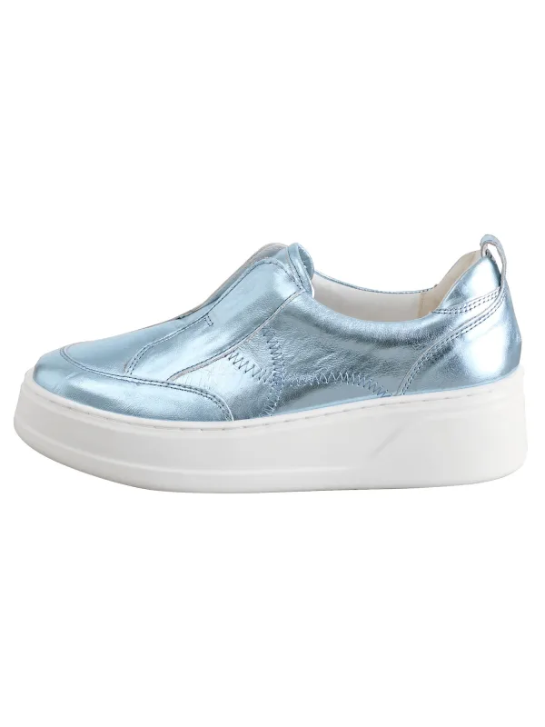 Design: Hielband; Type sluiting: Open; Materiaal: Leer; Motief: Effen; Plateau: Met plateau; Materiaal: Suède; Schoenneus: Ronde neus; Extra's: Metallic look; Hakhoogte: Platte hak (0-3 cm)
