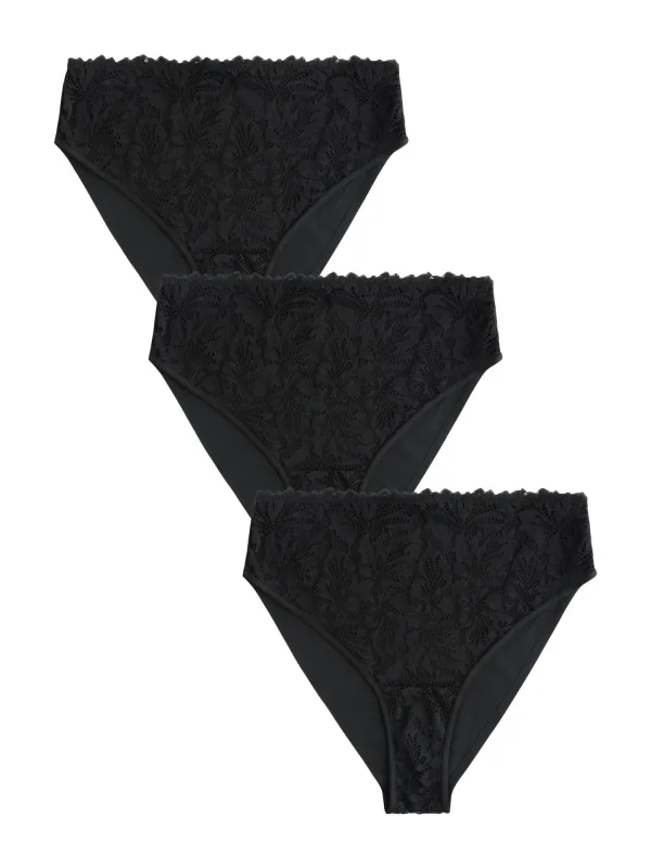 Design: Gevoerde zoom/rand, Elastische taille/zoom; Materiaal: Jersey; Motief: Effen; Details: Kant; Extra's: Op staal naden, Met textuur; Aantal: 3 Pack; Taillehoogte: High waist
