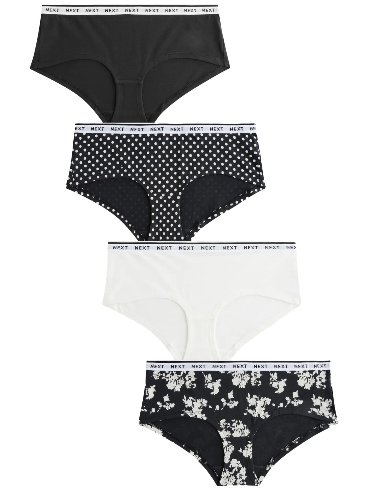 Design: Elastische taille/zoom; Materiaal: Katoen; Motief: Logoprint; Extra's: All-over patroon; Aantal: 4 Pack; Taillehoogte: Mid waist