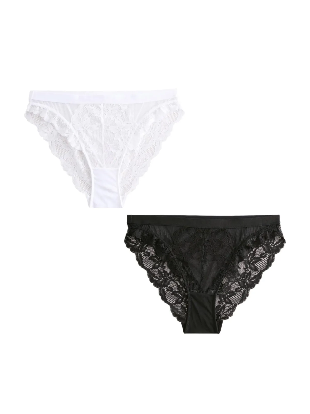 Design: Elastische taille/zoom; Motief: Effen; Details: Kant; Extra's: Licht transparant, Op staal naden; Aantal: 2 Pack; Taillehoogte: High waist