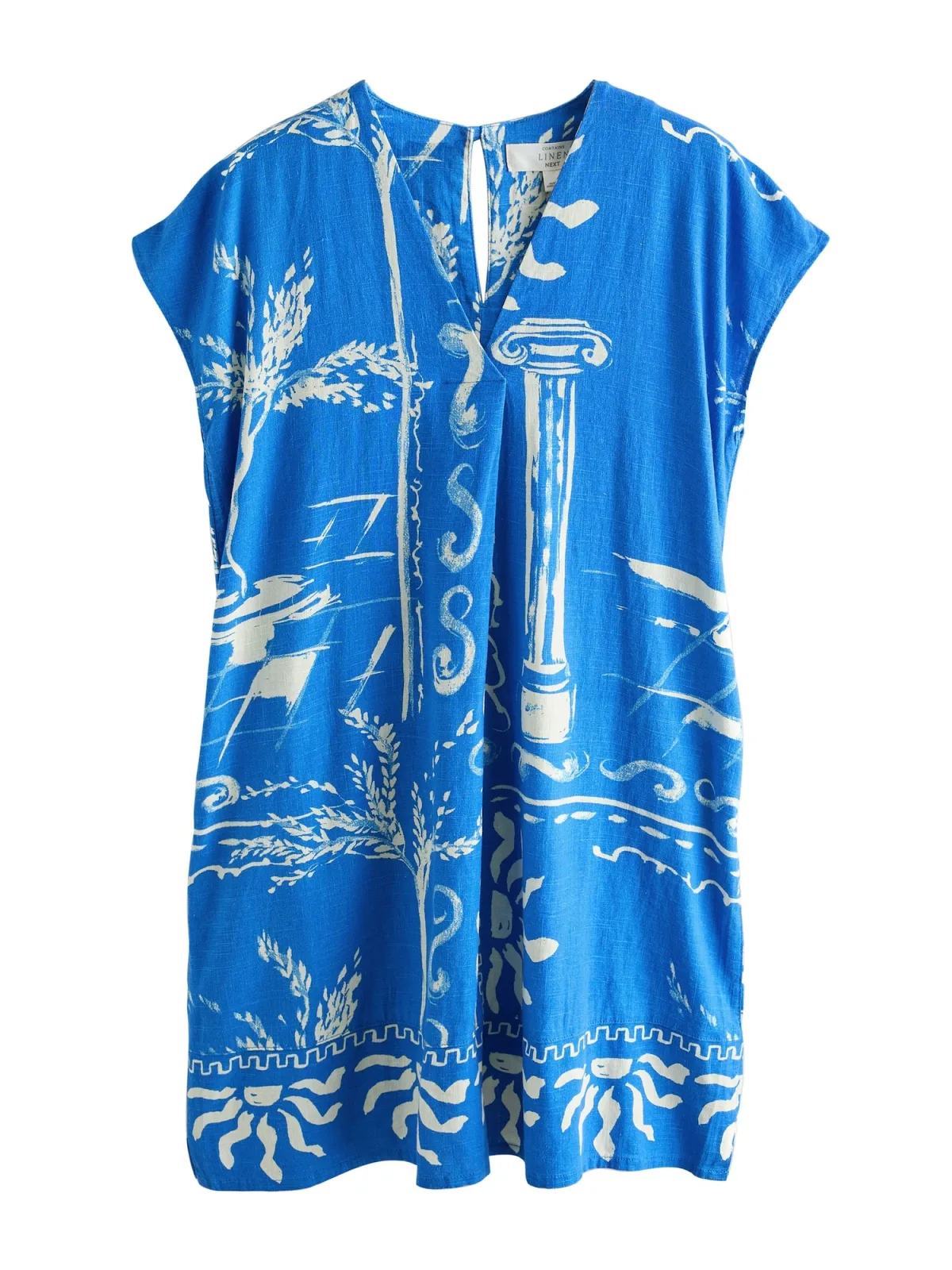 Design: Gevoerde zoom/rand, Keyholesluiting; Type sluiting: Knoopsluiting; Materiaal: Linnen; Halstype: V-hals; Details: Cut-outs, Plooien; Extra's: All-over patroon, Voelt zacht aan; Lengte: Kort/mini; Snit: Recht; Pasvorm: Losse pasvorm; Armlengte: Kwartmouw