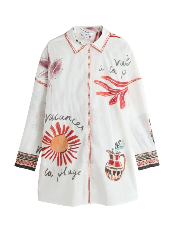 Design: Oversized, Siernaad; Type sluiting: Knoopsluiting; Materiaal: Katoen; Halstype: Overhemdkraag (klassiek); Details: Gedrapeerd; Extra's: All-over patroon; Lengte: Kort/mini; Snit: Recht; Pasvorm: Normale pasvorm; Armlengte: Lange mouw