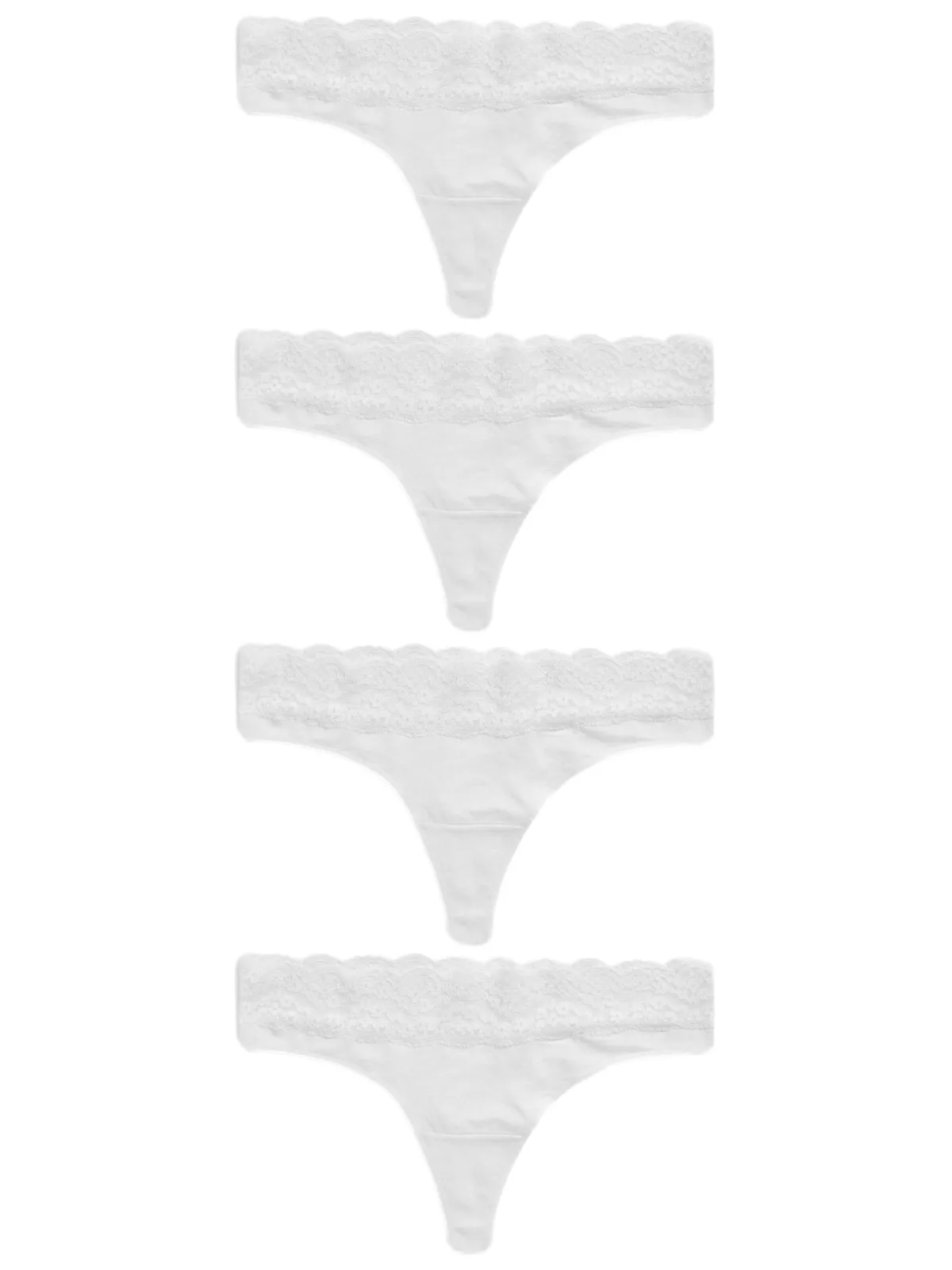 Materiaal: Katoen; Motief: Effen; Details: Kant; Aantal: 4 Pack; Taillehoogte: Mid waist