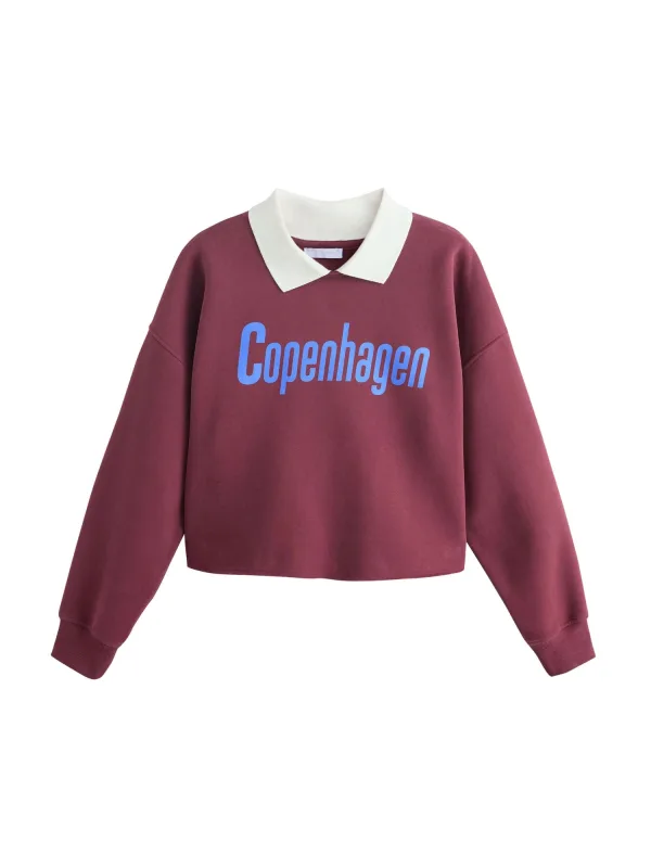 Design: Geribd ceintuurtje; Materiaal: Sweatstof; Halstype: Polokraag; Motief: Tekst print; Details: Borduursels; Extra's: Voelt zacht aan; Pasvorm: Normale pasvorm; Armlengte: Lange mouw; Lengte: Normale lengte
