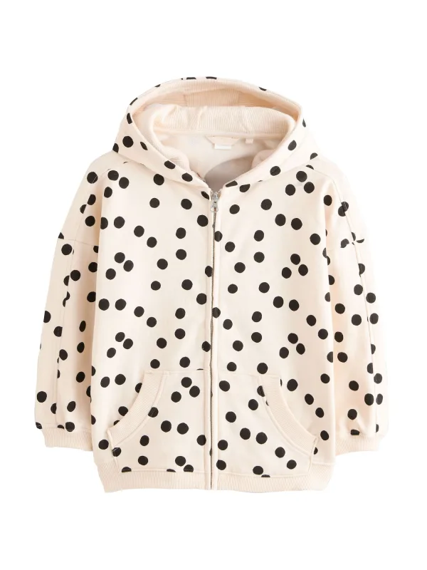 Design: Geribd ceintuurtje, Overcut schouder, Kangaroo zak; Type sluiting: Ritssluiting; Materiaal: Sweatstof; Halstype: Capuchon; Motief: Gestippeld; Extra's: All-over patroon, Voelt zacht aan; Pasvorm: Losse pasvorm; Armlengte: Lange mouw; Lengte: Normale lengte