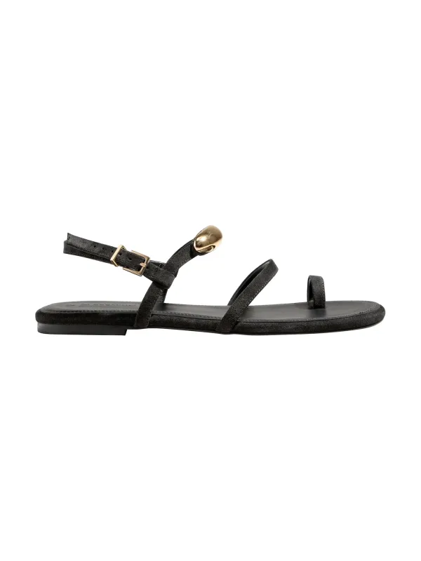 Design: Verstelbare riemen; Type sluiting: Riemsluiting; Materiaal: Leer; Motief: Effen; Materiaal: Suède; Schoenneus: Open toe; Extra's: Applicaties, Flexibele zool; Hakhoogte: Platte hak (0-3 cm)