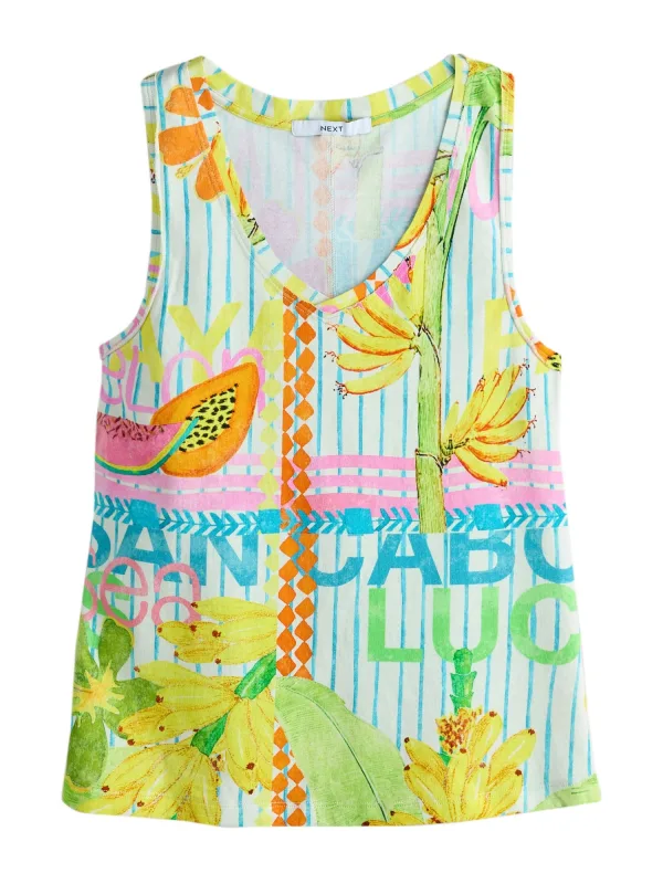 Design: Gevoerde zoom/rand; Materiaal: Katoen; Halstype: V-hals; Extra's: All-over patroon; Pasvorm: Normale pasvorm; Armlengte: Mouwloos; Lengte: Normale lengte