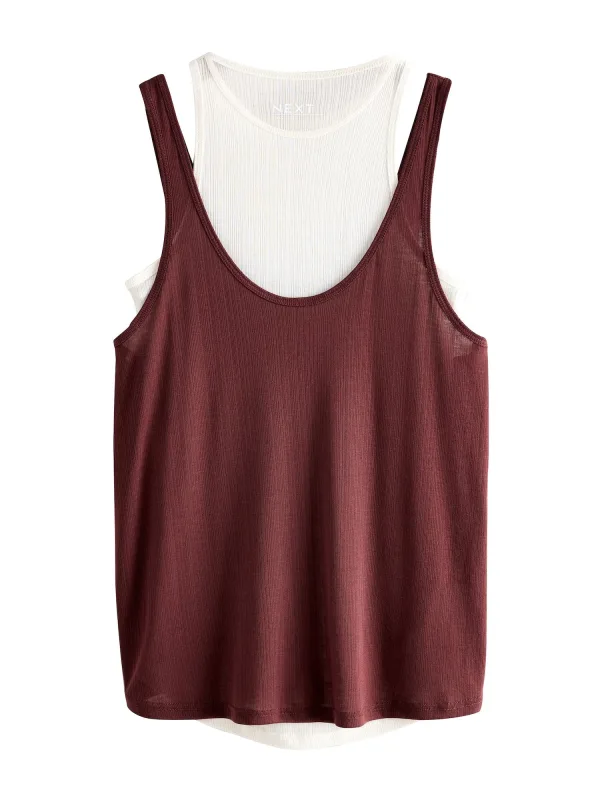 Design: Gevoerde zoom/rand, Recht model, Contrast voering, Gelaagde look; Materiaal: Jersey; Halstype: Ronde hals; Motief: Color-Blocking; Soort bandjes: Normale bandjes; Extra's: Op staal naden; Pasvorm: Normale pasvorm; Aantal: 2 Pack; Armlengte: Mouwloos; Lengte: Normale lengte