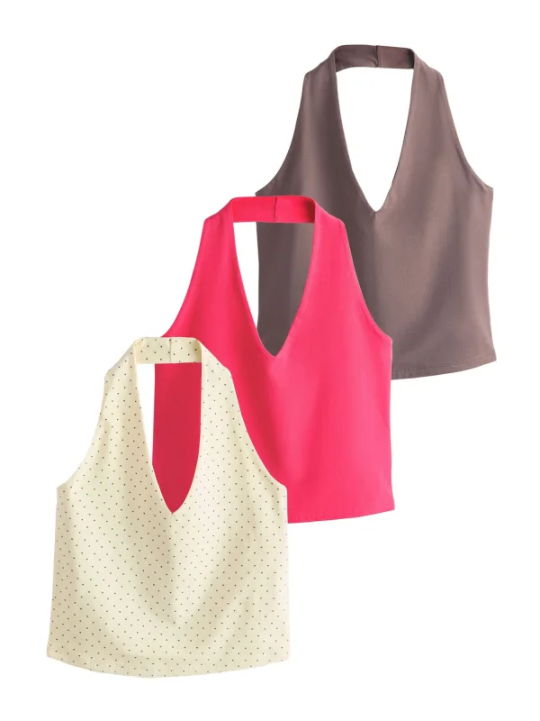 Design: Gevoerde zoom/rand; Materiaal: Jersey; Halstype: V-hals; Motief: Gestippeld; Soort bandjes: Haltermodel; Extra's: Voelt zacht aan; Pasvorm: Slanke pasvorm; Aantal: 3 Pack; Armlengte: Mouwloos; Lengte: Normale lengte