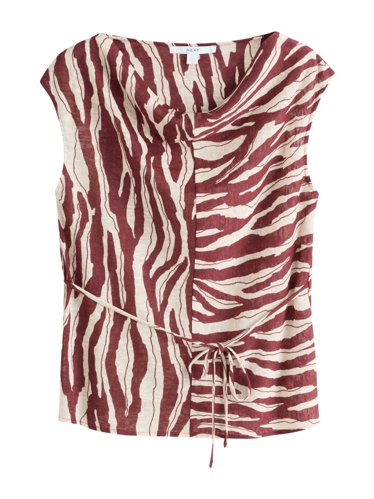Design: Om te knopen/binden; Materiaal: Gerecycled materiaal; Halstype: Watervalhals; Motief: Dierenprint; Soort bandjes: Brede bandjes; Details: Gedrapeerd; Extra's: All-over patroon, Voelt zacht aan; Pasvorm: Normale pasvorm; Armlengte: Mouwloos; Lengte: Normale lengte
