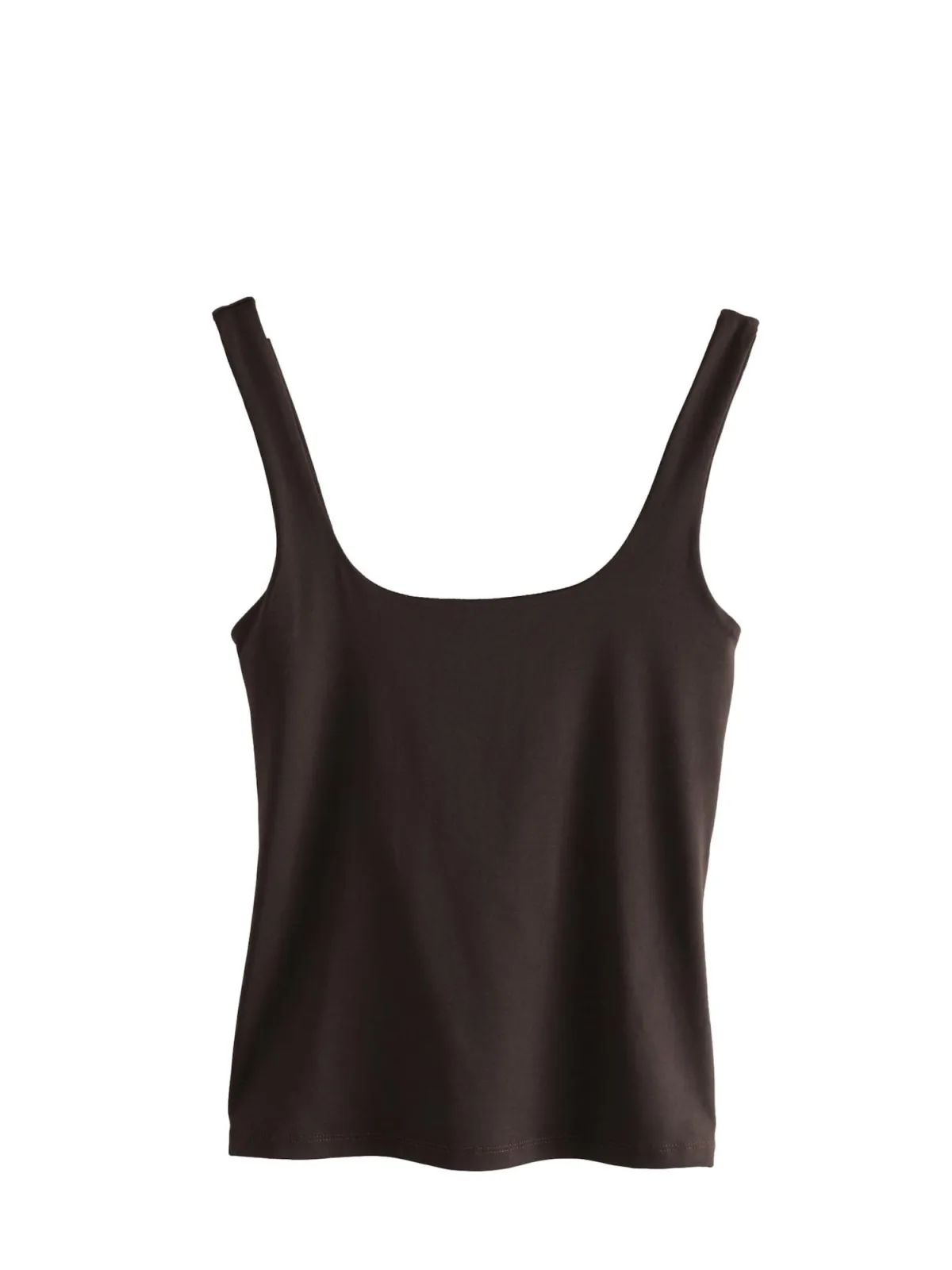 Design: Gevoerde zoom/rand; Materiaal: Jersey; Halstype: Carréhals; Motief: Effen; Soort bandjes: Normale bandjes; Extra's: Op staal naden, Voelt zacht aan; Pasvorm: Aansluitende pasvorm; Armlengte: Mouwloos; Lengte: Normale lengte