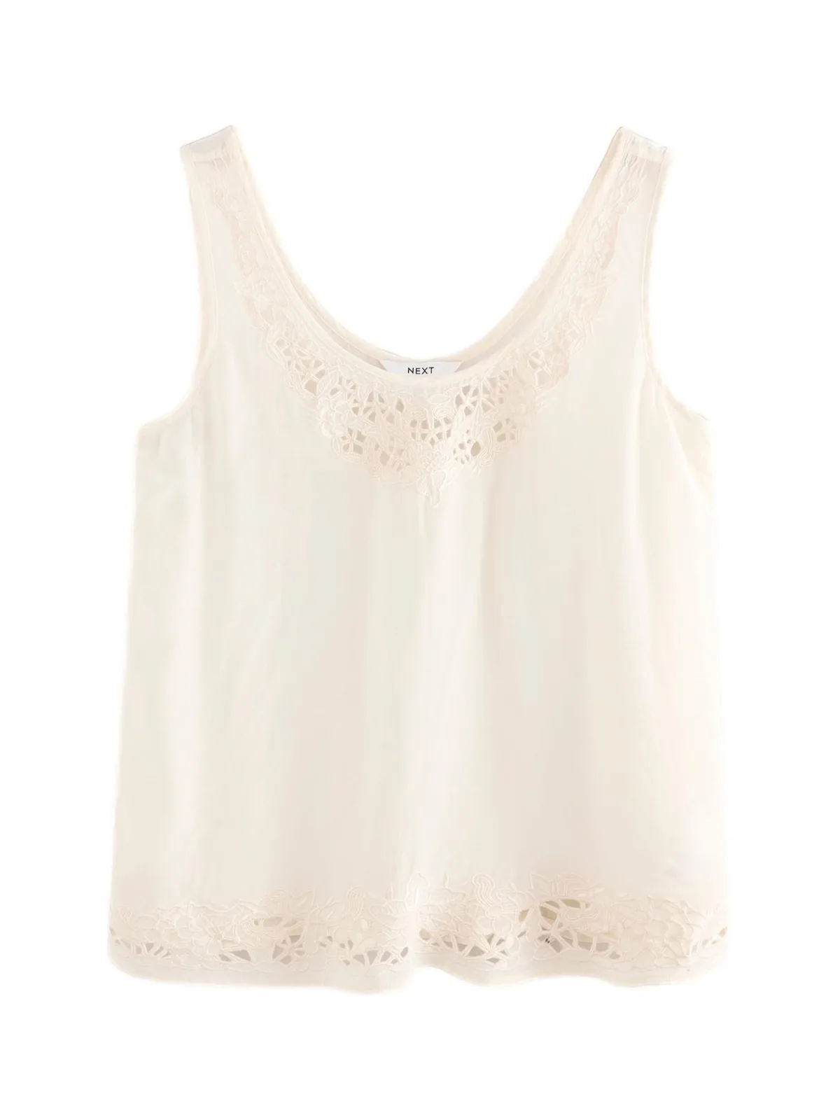 Design: Gevoerde zoom/rand, Overige kragen; Materiaal: Satijn; Halstype: Ronde hals; Motief: Effen; Soort bandjes: Brede bandjes; Details: Borduursels, Mesh; Extra's: Op staal naden, Lichte stof; Pasvorm: Losse pasvorm; Armlengte: Mouwloos; Lengte: Normale lengte