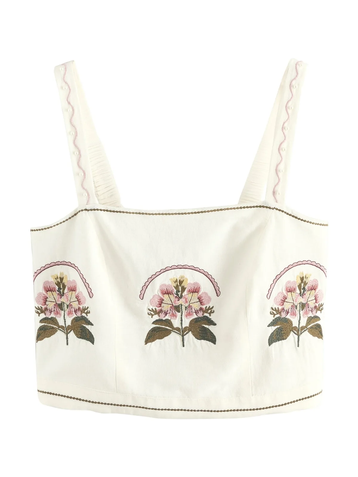 Design: Gevoerde zoom/rand; Materiaal: Viscose; Motief: Bloemenprint; Soort bandjes: Normale bandjes; Details: Borduursels; Extra's: Op staal naden; Pasvorm: Normale pasvorm; Armlengte: Mouwloos; Lengte: Normale lengte