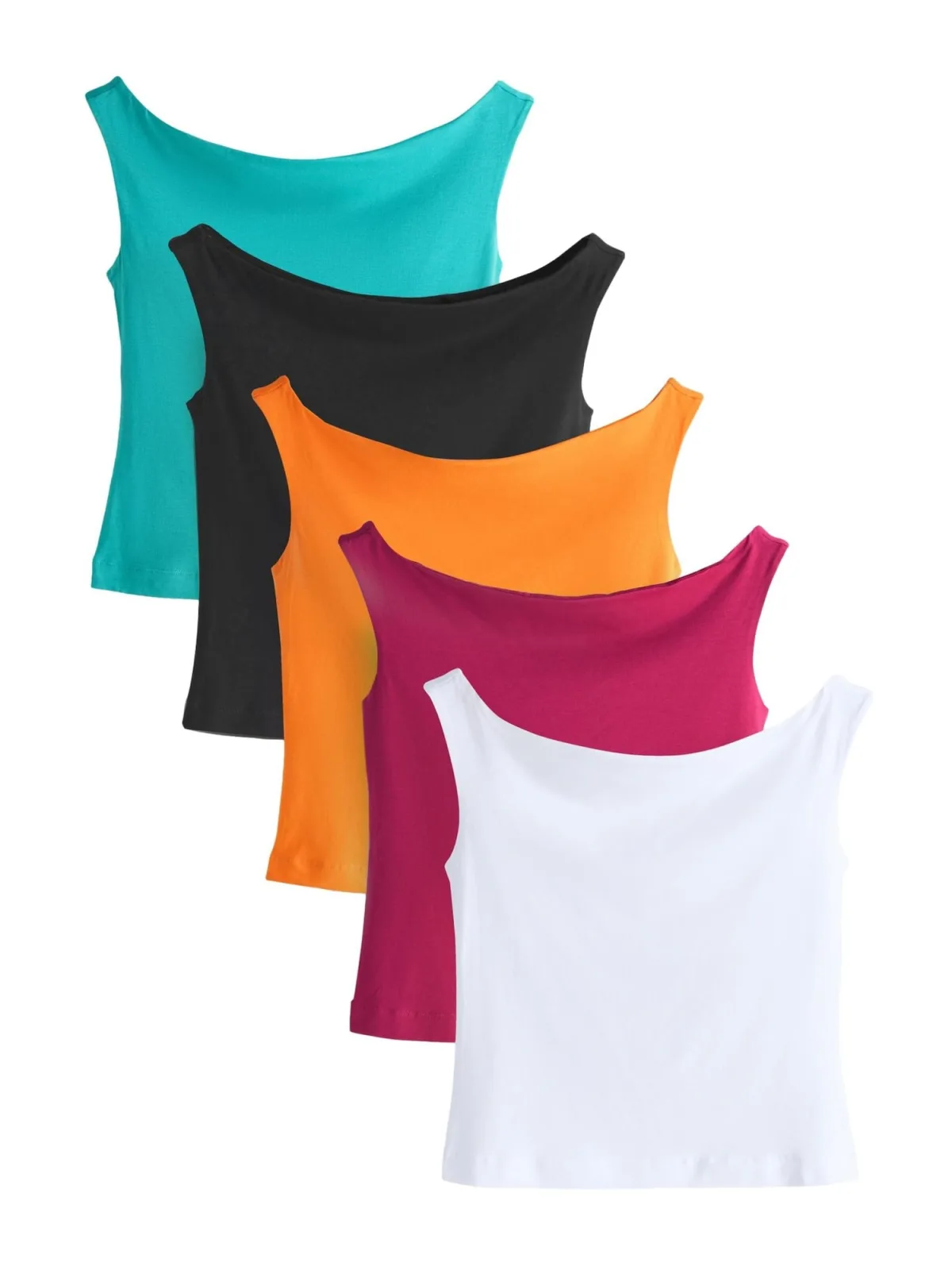 Design: Gevoerde zoom/rand; Materiaal: Jersey; Halstype: Boothals; Motief: Effen; Soort bandjes: Normale bandjes; Extra's: Op staal naden; Pasvorm: Normale pasvorm; Aantal: 5 Pack; Armlengte: Mouwloos; Lengte: Normale lengte