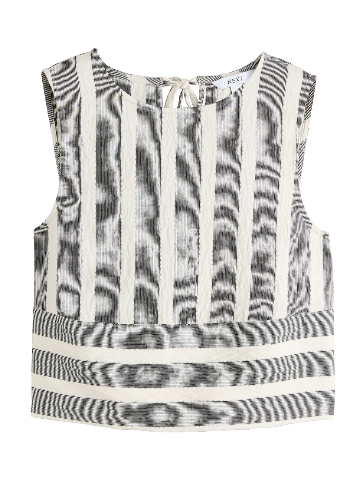Design: Zijdelingse inkepingen, Om te knopen/binden; Materiaal: Viscose; Halstype: Ronde hals; Motief: Gestreept; Soort bandjes: Normale bandjes; Extra's: All-over patroon, Voelt zacht aan; Pasvorm: Normale pasvorm; Armlengte: Mouwloos; Lengte: Korte pasvorm