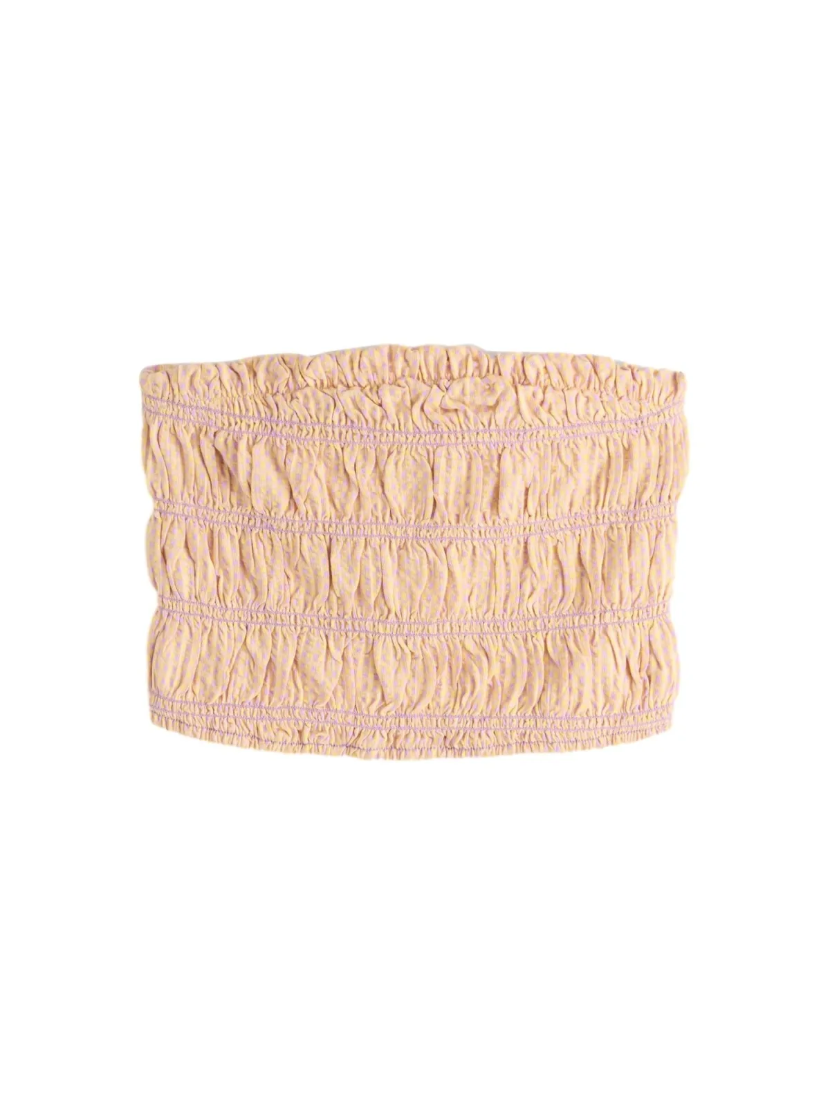 Design: Elastische taille/zoom, Contrasterende inserts; Materiaal: Jersey; Motief: Gestippeld; Soort bandjes: Bandeau; Details: Gedrapeerd; Extra's: All-over patroon, Met textuur; Pasvorm: Normale pasvorm; Armlengte: Mouwloos; Lengte: Korte pasvorm