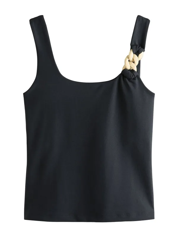 Design: Gevoerde zoom/rand; Materiaal: Gerecycled materiaal; Halstype: Ronde hals; Motief: Effen; Soort bandjes: Normale bandjes; Extra's: Voelt zacht aan; Pasvorm: Normale pasvorm; Armlengte: Mouwloos; Lengte: Normale lengte