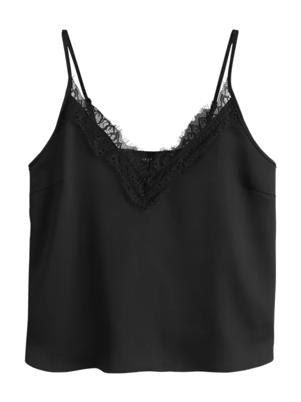 Design: Gevoerde zoom/rand; Materiaal: Gerecycled materiaal; Halstype: V-hals; Motief: Effen; Soort bandjes: Spaghettibandjes; Details: Kant; Extra's: Gladde stof; Pasvorm: Normale pasvorm; Armlengte: Mouwloos; Lengte: Normale lengte