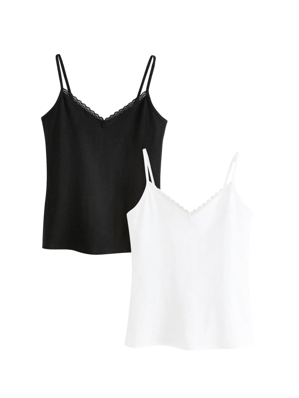 Design: Gevoerde zoom/rand; Materiaal: Jersey; Halstype: V-hals; Motief: Effen; Soort bandjes: Spaghettibandjes; Details: Kant; Extra's: Lichte stof; Pasvorm: Normale pasvorm; Armlengte: Mouwloos; Lengte: Normale lengte