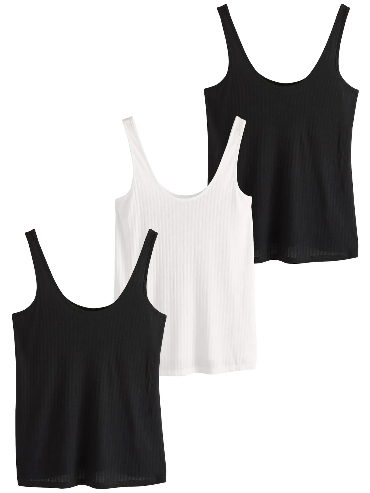 Design: Geribbeld gebreid; Materiaal: Jersey; Halstype: Ronde hals; Motief: Effen; Soort bandjes: Normale bandjes; Extra's: Voelt zacht aan; Pasvorm: Normale pasvorm; Aantal: 3 Pack; Armlengte: Mouwloos; Lengte: Normale lengte