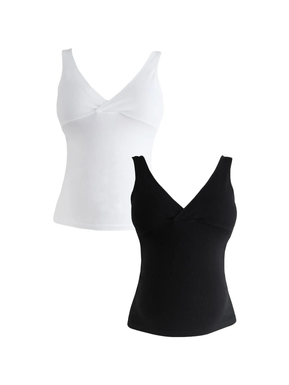 Design: Gevoerde zoom/rand, Geribbeld gebreid; Materiaal: Jersey; Halstype: Wikkeltop; Motief: Effen; Soort bandjes: Normale bandjes; Details: Gedrapeerd; Extra's: Op staal naden; Borstvoedingsfunctie: Met borstvoedingsfunctie; Pasvorm: Slanke pasvorm; Aantal: 2 Pack; Armlengte: Mouwloos; Lengte: Normale lengte