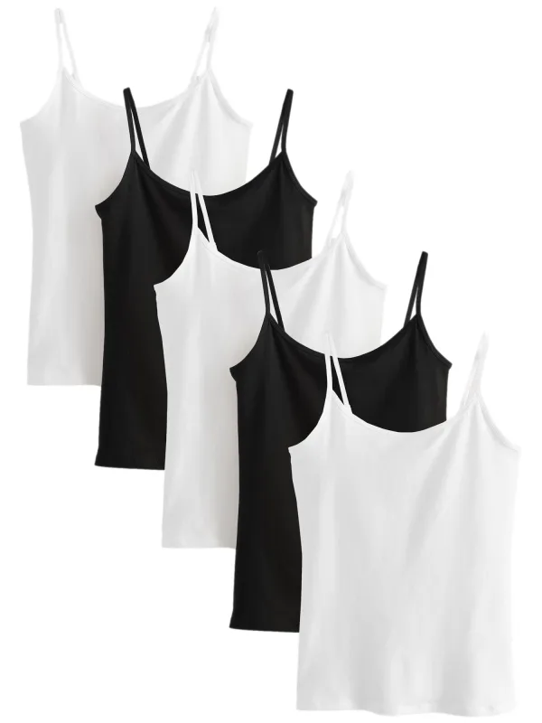 Design: Gevoerde zoom/rand; Materiaal: Jersey; Motief: Effen; Soort bandjes: Spaghettibandjes; Extra’s: Op staal naden; Pasvorm: Normale pasvorm; Aantal: 5 Pack; Armlengte: Mouwloos; Lengte: Normale lengte