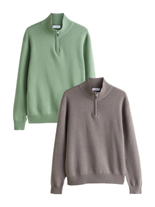 Next 100 Cotton Regular Fit Premium Quarter Zip Jumpers 2...