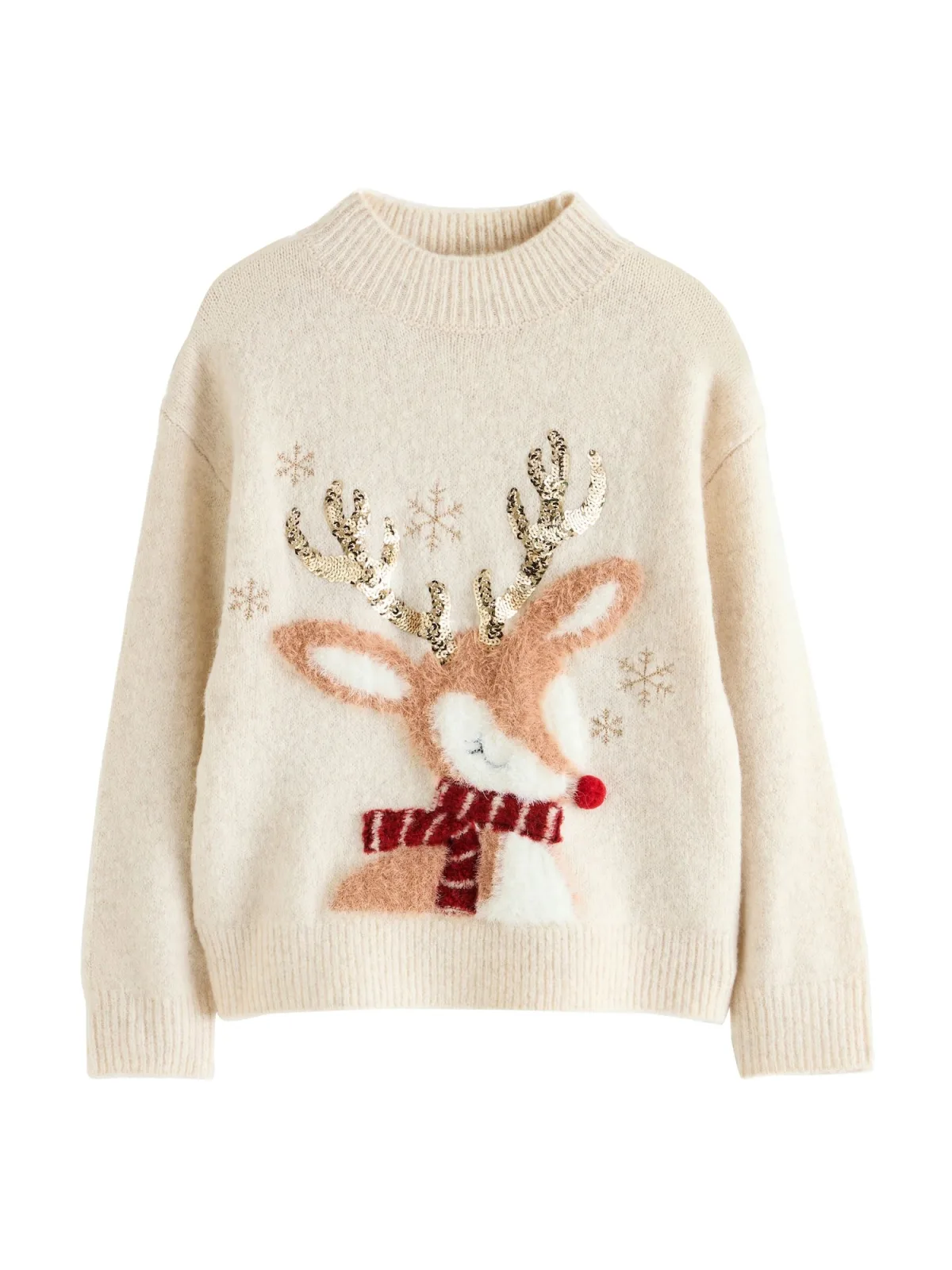 Design: Geribbelde kraag; Materiaal: Knitwear; Halstype: Opstaande kraag; Motief: Motiefprint; Details: Pailletten, Borduursels; Extra's: Voelt zacht aan, Kerstdesign; Pasvorm: Normale pasvorm; Armlengte: Lange mouw; Lengte: Normale lengte
