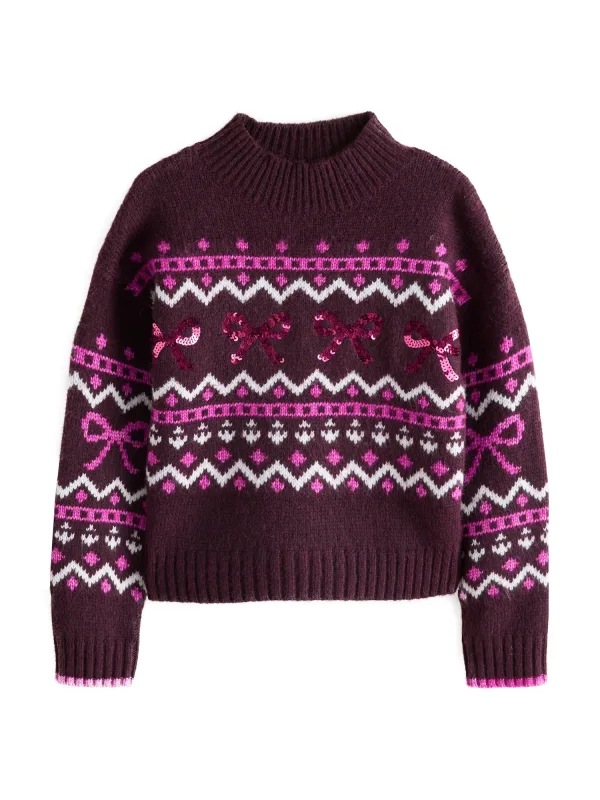 Design: Geribbelde kraag, Kerstdesign; Materiaal: Knitwear; Halstype: Opstaande kraag; Details: Pailletten; Extra's: Glitterend; Pasvorm: Normale pasvorm; Armlengte: Lange mouw; Lengte: Normale lengte