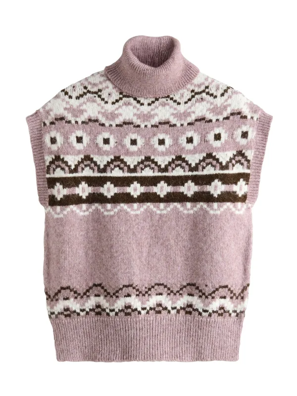 Design: Geribd ceintuurtje; Materiaal: Knitwear; Halstype: Col; Motief: Winterse print; Extra's: Fully fashioned; Pasvorm: Normale pasvorm; Armlengte: Mouwloos; Lengte: Normale lengte