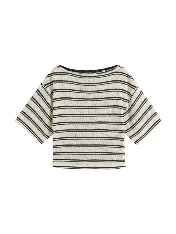 Design: Overcut schouder; Materiaal: Knitwear; Halstype: Boothals; Motief: Gestreept; Extra's: Voelt zacht aan; Pasvorm: Losse pasvorm; Armlengte: Halve mouw; Lengte: Normale lengte