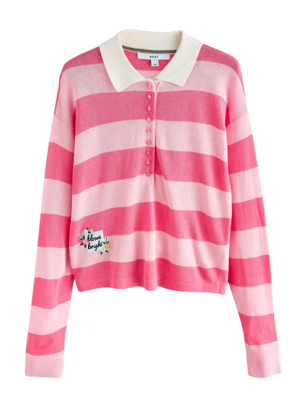 Design: Gevoerde zoom/rand, Knop placket, Overcut schouder, Turn-down kraag; Type sluiting: Knoopsluiting; Materiaal: Knitwear; Halstype: Polokraag; Motief: Gestreept; Details: Borduursels; Extra's: All-over patroon, Voelt zacht aan; Pasvorm: Normale pasvorm; Armlengte: Lange mouw; Lengte: Normale lengte