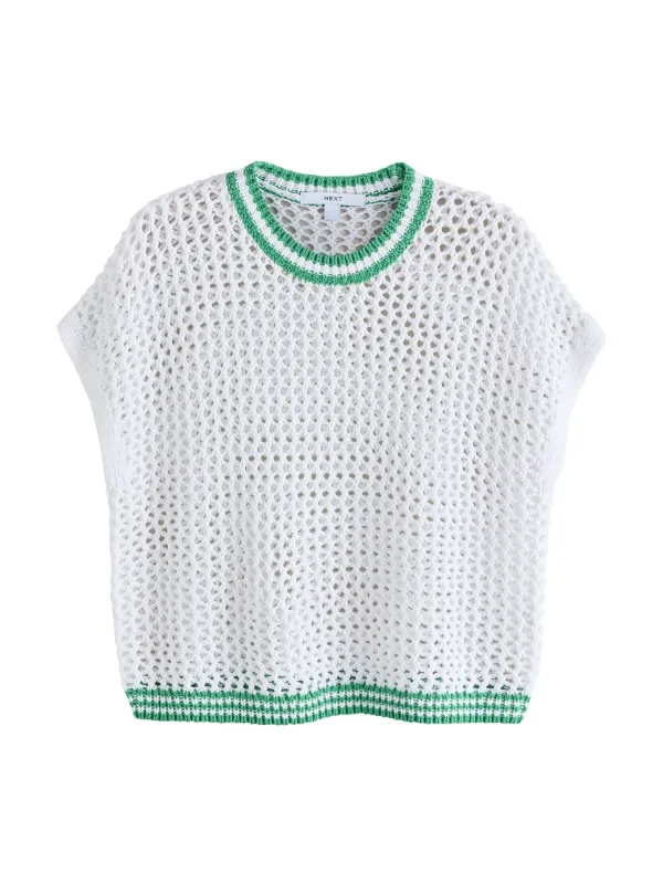 Design: Geribbelde kraag, Geribd ceintuurtje, Contrasterende inserts; Materiaal: Gehaakt; Halstype: Ronde hals; Motief: Effen; Details: Mesh; Extra's: Met textuur; Pasvorm: Losse pasvorm; Armlengte: Kwartmouw; Lengte: Normale lengte
