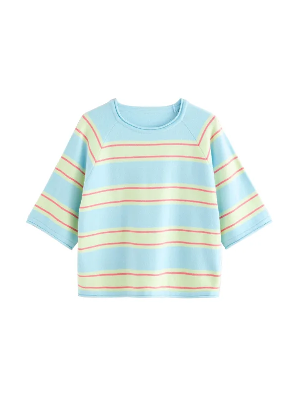 Design: Rechte zoom, Raglanmouwen; Materiaal: Knitwear; Halstype: Ronde hals; Motief: Gestreept; Extra's: All-over patroon, Voelt zacht aan; Pasvorm: Normale pasvorm; Armlengte: Driekwart mouw; Lengte: Normale lengte