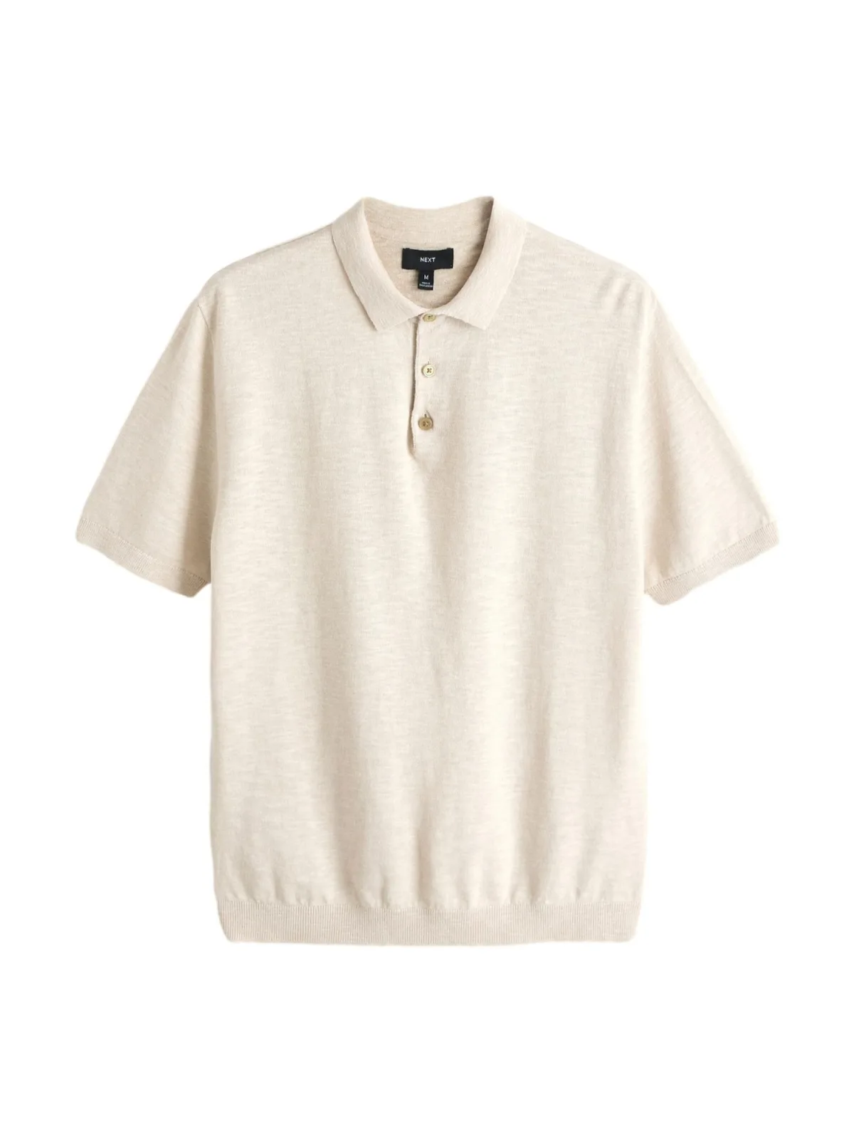 Next Gebreide polo met korte mouwen met linnen standaard pasvorm
