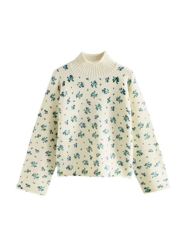 Design: Geribbelde kraag, Geribd ceintuurtje; Materiaal: Knitwear; Halstype: Opstaande kraag; Motief: Bloemenprint; Extra's: All-over patroon, Voelt zacht aan; Pasvorm: Normale pasvorm; Armlengte: Lange mouw; Lengte: Normale lengte