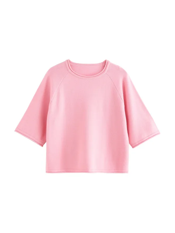 Design: Raglanmouwen, Gerolde boord; Materiaal: Knitwear; Halstype: Ronde hals; Motief: Effen; Extra's: Fully fashioned, Met textuur; Pasvorm: Losse pasvorm; Armlengte: Halve mouw; Lengte: Normale lengte